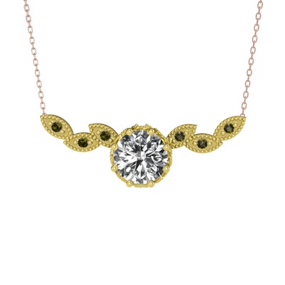 Beyaz zirkon ve peridot 8 ayar altın kolye (40 cm rose altın rolo zincir)