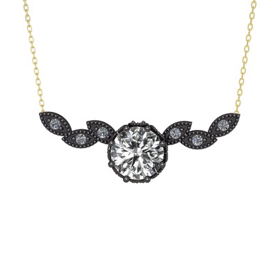 Beyaz zirkon ve pırlanta 925 ayar siyah rodyum kaplama gümüş kolye (0.12 karat, 40 cm gümüş rolo zincir)