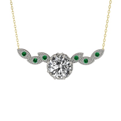 Beyaz zirkon ve yeşil kuvars 925 ayar gümüş kolye (40 cm altın rolo zincir)