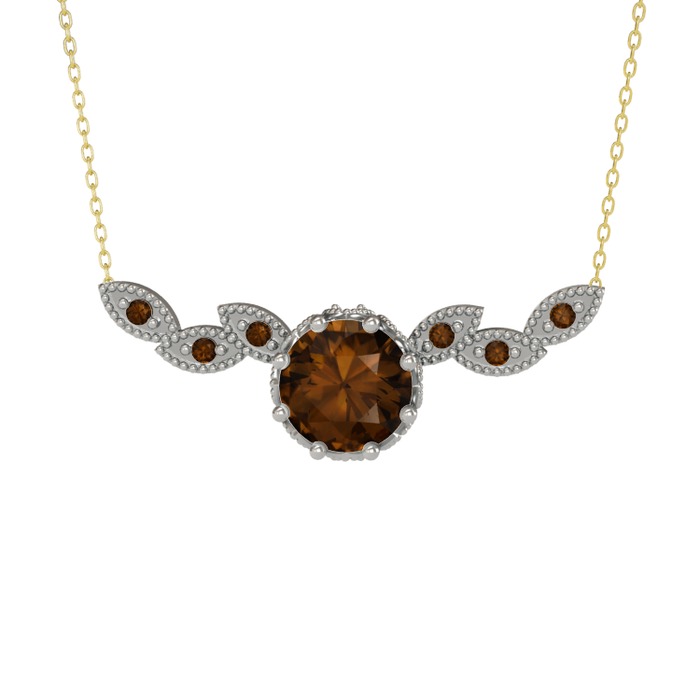 Dumanlı kuvars 14 ayar beyaz altın kolye (40 cm altın rolo zincir)