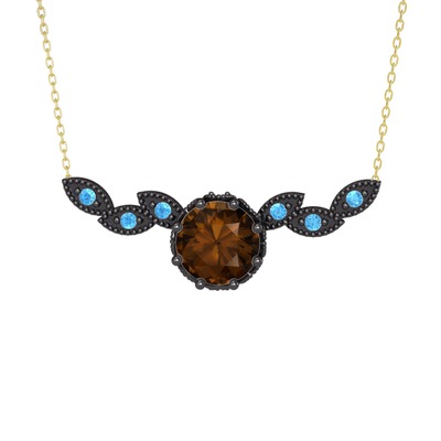 Dumanlı kuvars ve akuamarin 925 ayar siyah rodyum kaplama gümüş kolye (40 cm gümüş rolo zincir)