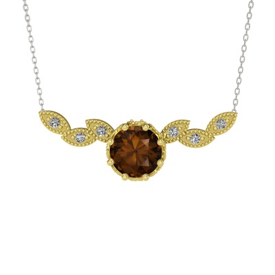 Dumanlı kuvars ve beyaz zirkon 18 ayar altın kolye (40 cm gümüş rolo zincir)
