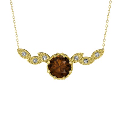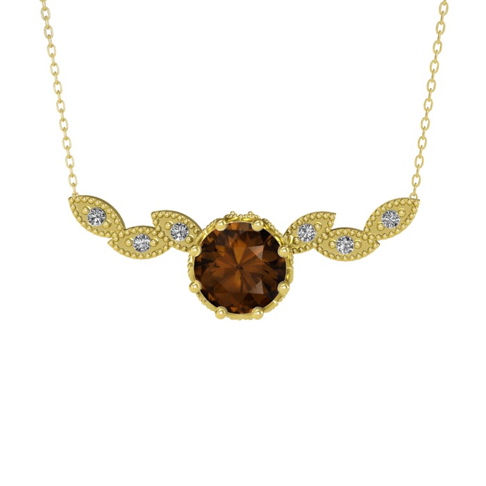 Dumanlı kuvars ve beyaz zirkon 925 ayar altın kaplama gümüş kolye (40 cm altın rolo zincir)