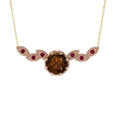 Dumanlı kuvars ve kök yakut 14 ayar rose altın kolye (40 cm altın rolo zincir)