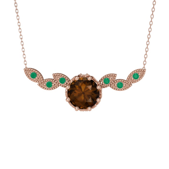 Dumanlı kuvars ve kök zümrüt 14 ayar rose altın kolye (40 cm rose altın rolo zincir)