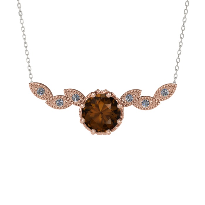 Dumanlı kuvars ve pırlanta 925 ayar rose altın kaplama gümüş kolye (0.12 karat, 40 cm beyaz altın rolo zincir)