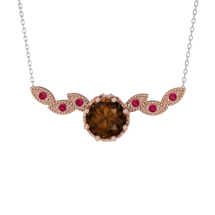 Dumanlı kuvars ve rodolit garnet 18 ayar rose altın kolye (40 cm beyaz altın rolo zincir)