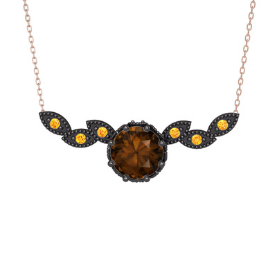 Dumanlı kuvars ve sitrin 925 ayar siyah rodyum kaplama gümüş kolye (40 cm rose altın rolo zincir)