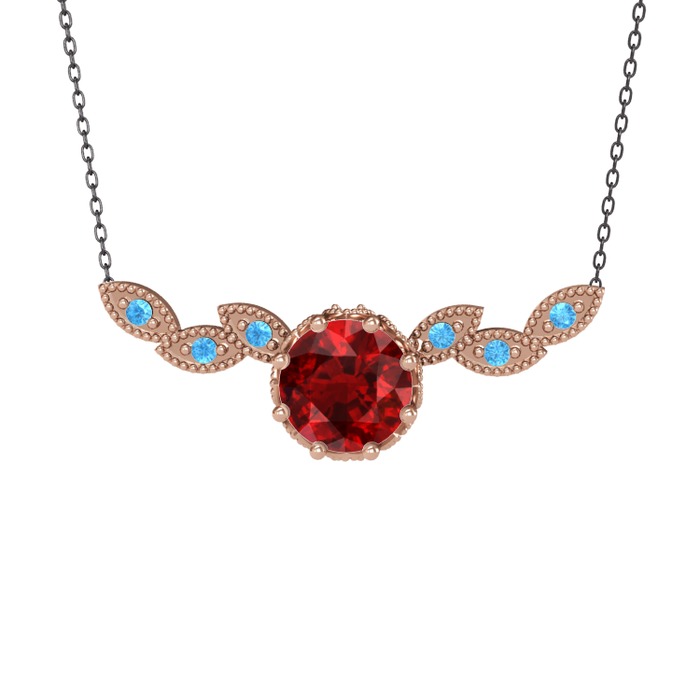 Garnet ve akuamarin 14 ayar rose altın kolye (40 cm gümüş rolo zincir)