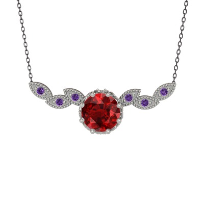 Garnet ve ametist 8 ayar beyaz altın kolye (40 cm gümüş rolo zincir)