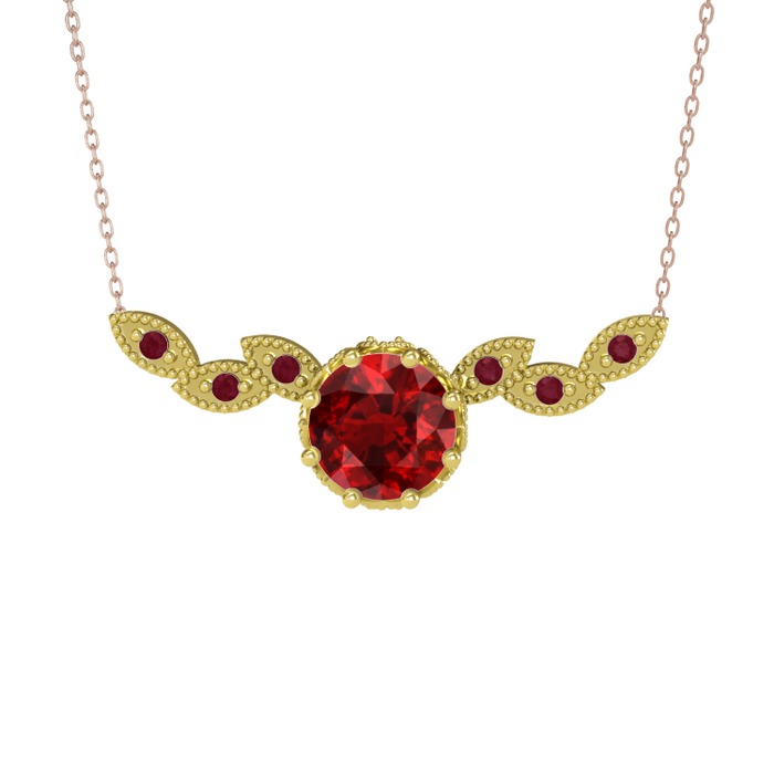 Garnet ve kök yakut 18 ayar altın kolye (40 cm rose altın rolo zincir)