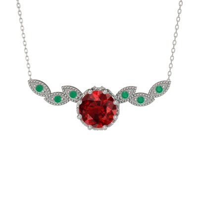 Garnet ve kök zümrüt 925 ayar gümüş kolye (40 cm gümüş rolo zincir)