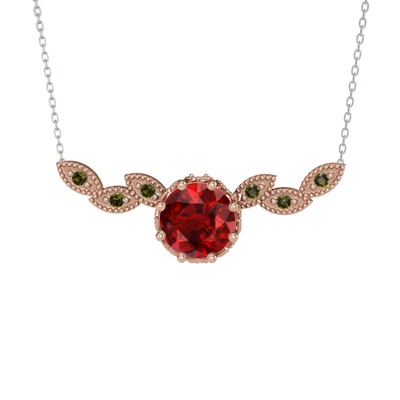 Garnet ve peridot 8 ayar rose altın kolye (40 cm beyaz altın rolo zincir)