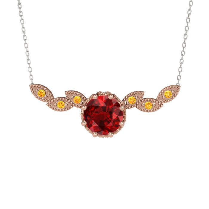 Garnet ve sitrin 18 ayar rose altın kolye (40 cm beyaz altın rolo zincir)