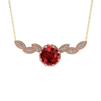 Garnet ve swarovski 18 ayar rose altın kolye (40 cm altın rolo zincir)