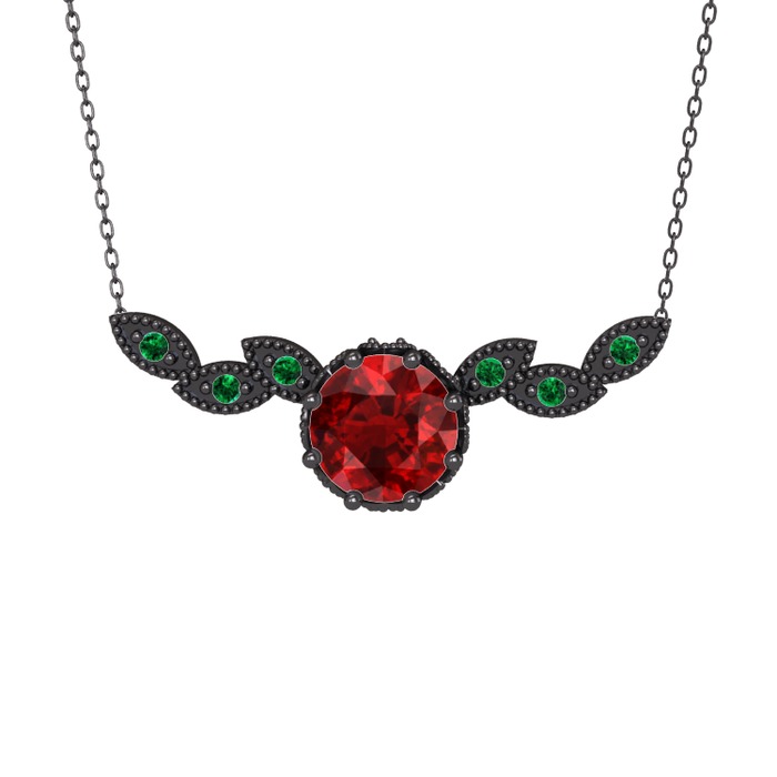 Garnet ve yeşil kuvars 925 ayar siyah rodyum kaplama gümüş kolye (40 cm gümüş rolo zincir)