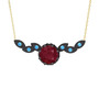 Kök yakut ve akuamarin 925 ayar siyah rodyum kaplama gümüş kolye (40 cm altın rolo zincir)