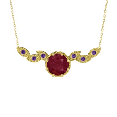 Kök yakut ve ametist 14 ayar altın kolye (40 cm altın rolo zincir)