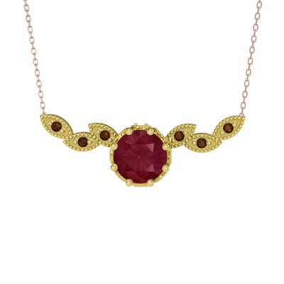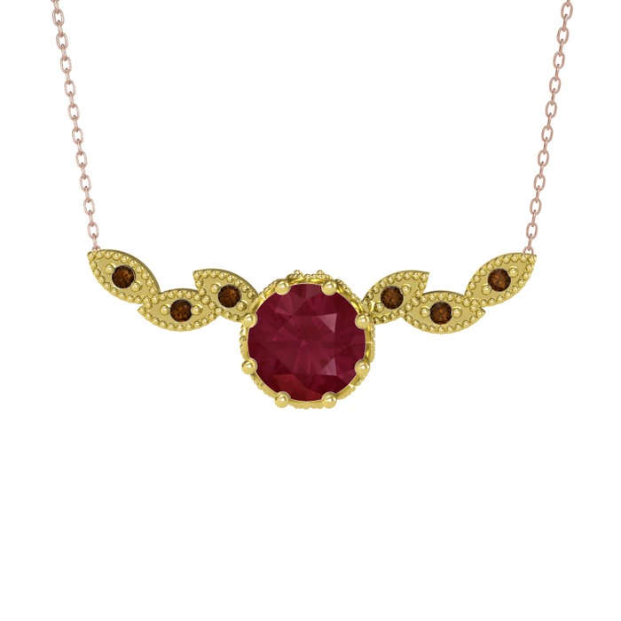Kök yakut ve dumanlı kuvars 18 ayar altın kolye (40 cm gümüş rolo zincir)