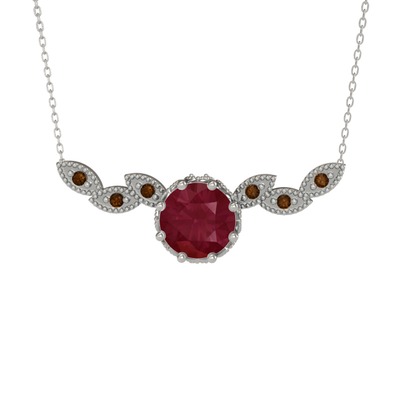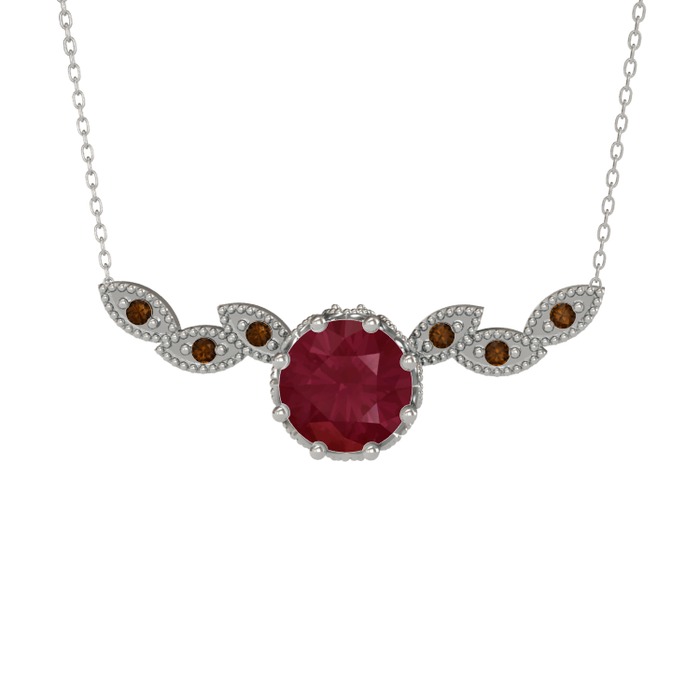 Kök yakut ve dumanlı kuvars 925 ayar gümüş kolye (40 cm beyaz altın rolo zincir)
