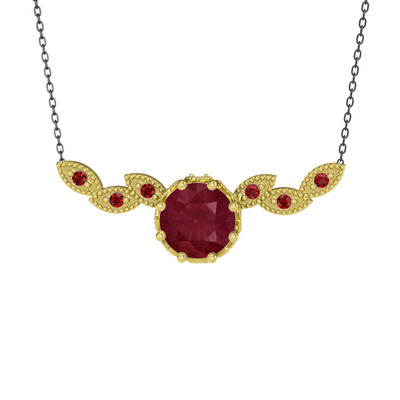 Kök yakut ve garnet 14 ayar altın kolye (40 cm gümüş rolo zincir)