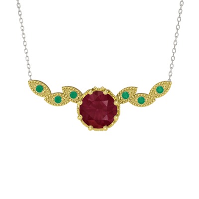 Kök yakut ve kök zümrüt 18 ayar altın kolye (40 cm beyaz altın rolo zincir)