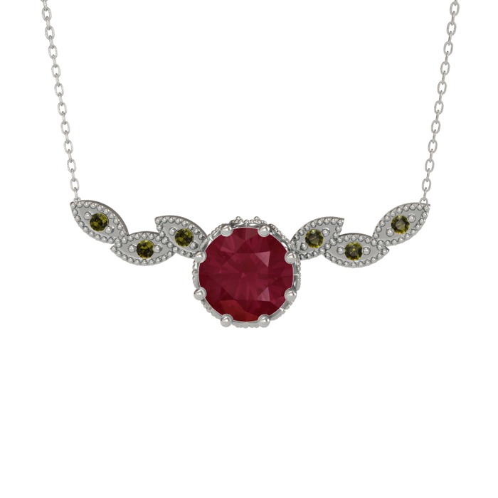 Kök yakut ve peridot 18 ayar beyaz altın kolye (40 cm beyaz altın rolo zincir)