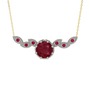 Kök yakut ve rodolit garnet 18 ayar beyaz altın kolye (40 cm altın rolo zincir)