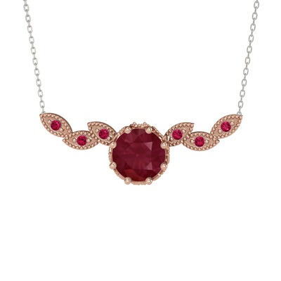 Kök yakut ve rodolit garnet 8 ayar rose altın kolye (40 cm beyaz altın rolo zincir)