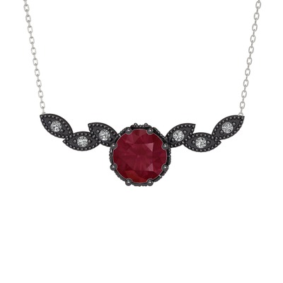 Kök yakut ve swarovski 925 ayar siyah rodyum kaplama gümüş kolye (40 cm beyaz altın rolo zincir)