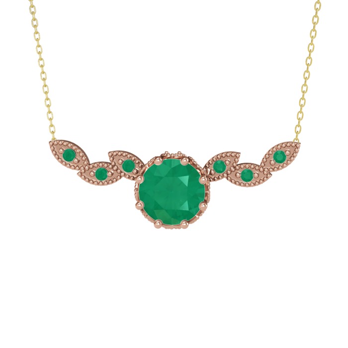 Kök zümrüt 14 ayar rose altın kolye (40 cm altın rolo zincir)