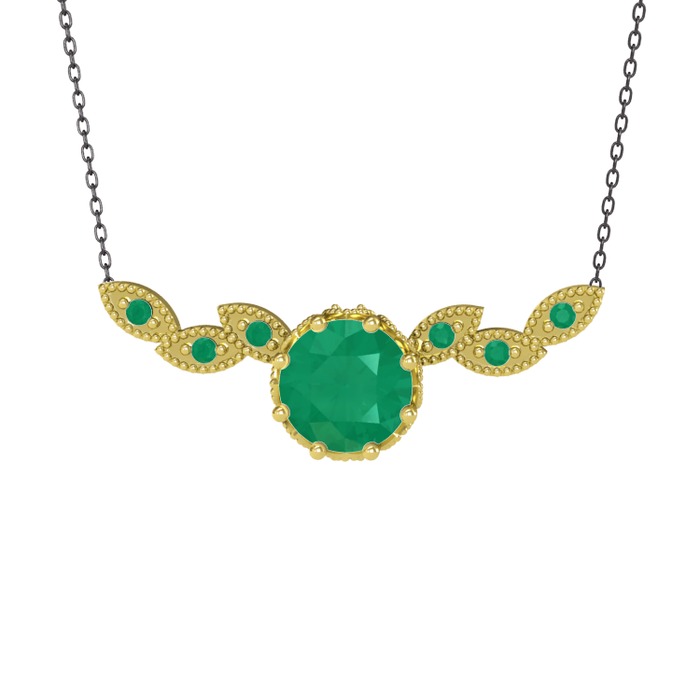 Kök zümrüt 8 ayar altın kolye (40 cm gümüş rolo zincir)
