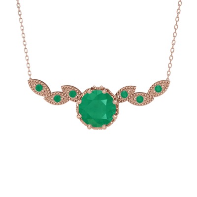 Kök zümrüt 8 ayar rose altın kolye (40 cm rose altın rolo zincir)