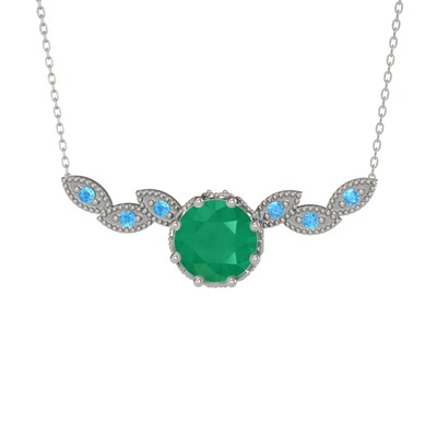 Kök zümrüt ve akuamarin 14 ayar beyaz altın kolye (40 cm beyaz altın rolo zincir)
