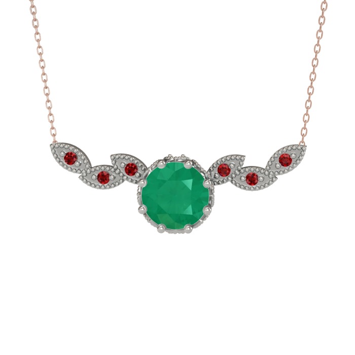 Kök zümrüt ve garnet 18 ayar beyaz altın kolye (40 cm gümüş rolo zincir)
