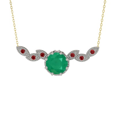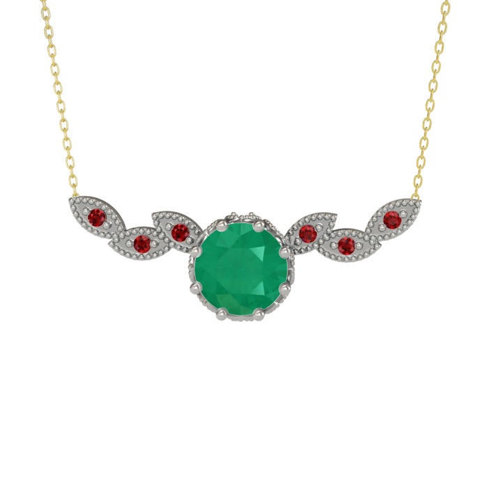 Kök zümrüt ve garnet 8 ayar beyaz altın kolye (40 cm gümüş rolo zincir)