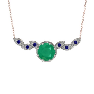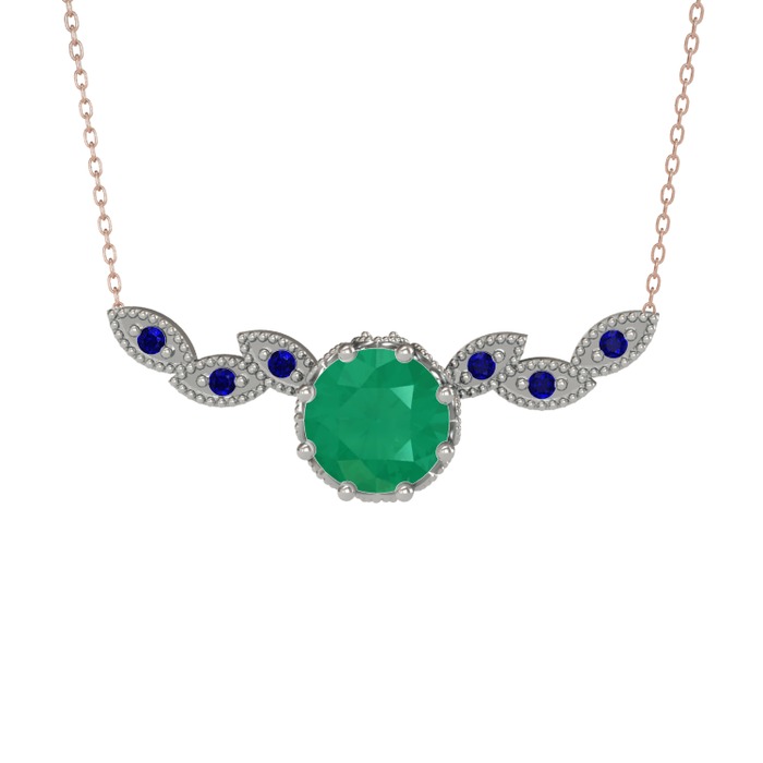 Kök zümrüt ve lab safir 8 ayar beyaz altın kolye (40 cm gümüş rolo zincir)