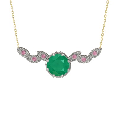 Kök zümrüt ve pembe kuvars 14 ayar beyaz altın kolye (40 cm altın rolo zincir)