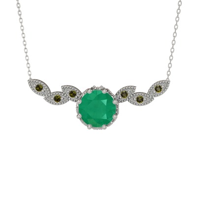 Kök zümrüt ve peridot 18 ayar beyaz altın kolye (40 cm gümüş rolo zincir)