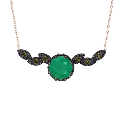 Kök zümrüt ve peridot 925 ayar siyah rodyum kaplama gümüş kolye (40 cm rose altın rolo zincir)