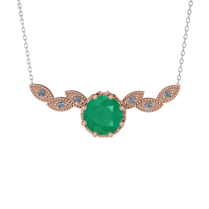 Kök zümrüt ve pırlanta 925 ayar rose altın kaplama gümüş kolye (0.12 karat, 40 cm gümüş rolo zincir)