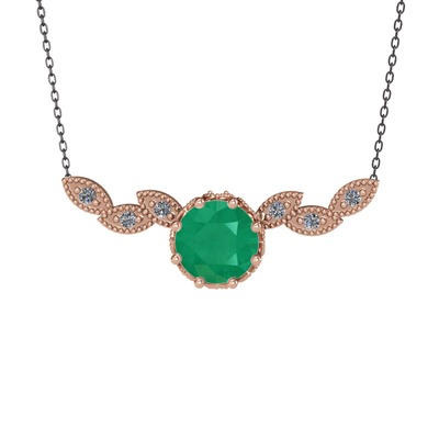 Kök zümrüt ve pırlanta 925 ayar rose altın kaplama gümüş kolye (0.12 karat, 40 cm gümüş rolo zincir)