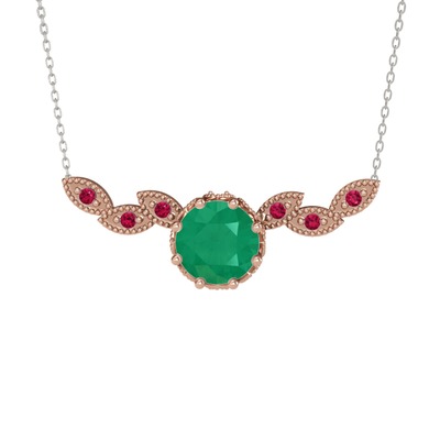 Kök zümrüt ve rodolit garnet 925 ayar rose altın kaplama gümüş kolye (40 cm beyaz altın rolo zincir)