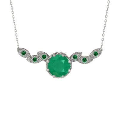 Kök zümrüt ve yeşil kuvars 18 ayar beyaz altın kolye (40 cm gümüş rolo zincir)