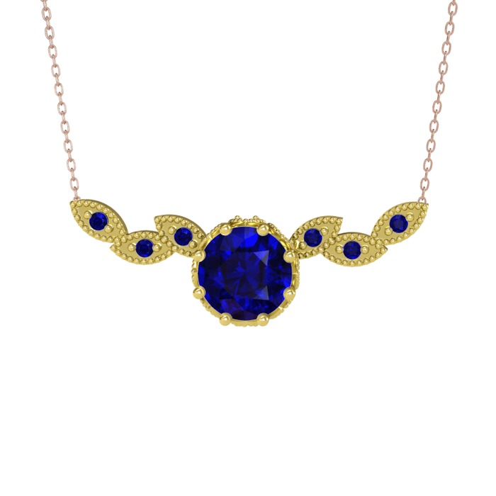 Lab safir 8 ayar altın kolye (40 cm rose altın rolo zincir)