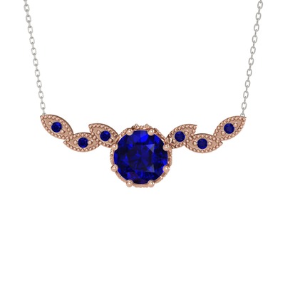 Lab safir 8 ayar rose altın kolye (40 cm gümüş rolo zincir)