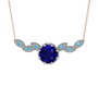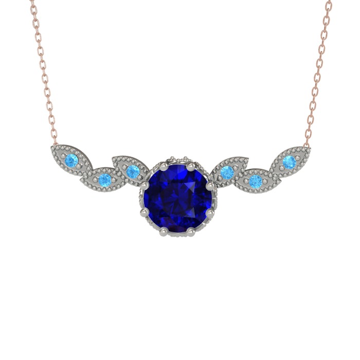 Lab safir ve akuamarin 18 ayar beyaz altın kolye (40 cm gümüş rolo zincir)