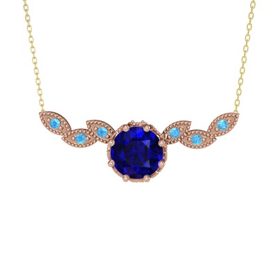 Lab safir ve akuamarin 8 ayar rose altın kolye (40 cm altın rolo zincir)