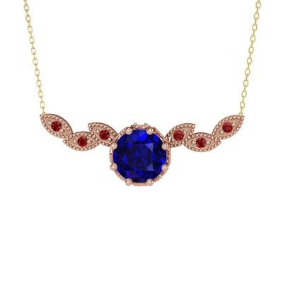 Lab safir ve garnet 8 ayar rose altın kolye (40 cm altın rolo zincir)