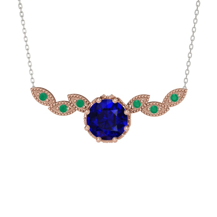 Lab safir ve kök zümrüt 14 ayar rose altın kolye (40 cm beyaz altın rolo zincir)